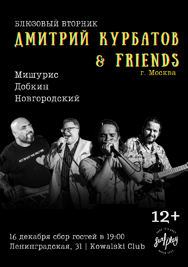 Друзья! Всех любителей блюза и качественной живой музыки ждёт настоящий рождественский подарок! В Kowalski Club в один вечер соберутся отцы российской блюзовой сцены. Такого ещё не было!