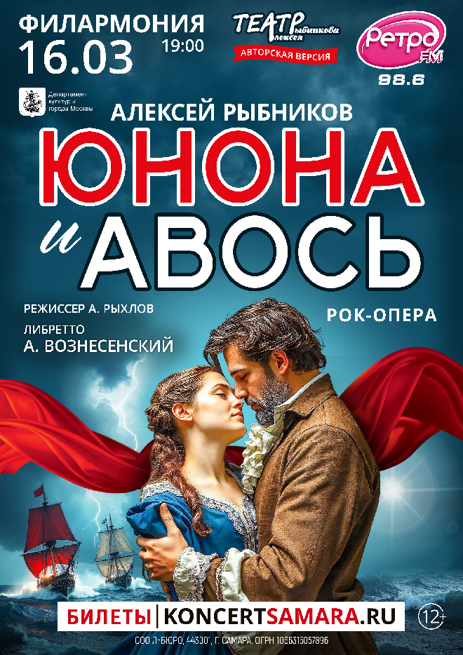 «Юнона и Авось» — самая известная рок-опера на российской сцене. Авторы — выдающийся русский композитор Алексей Рыбников и поэт Андрей Вознесенский. Постановку рок-оперы «Юнона и Авось» в авторской версии осуществила Московская государственная творческая мастерская под руководством Народного артиста РФ, Лауреата Государственной премии РФ, Лауреата премии Президента РФ, композитора Алексея Львовича Рыбникова.