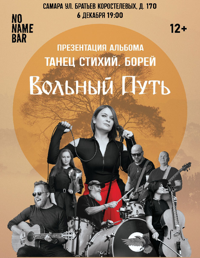 Впервые в Самаре! Фолк-рок группа "Вольный Путь" проведет большой сольный концерт в рамках презентации нового альбома "Танец стихий. Борей". Музыканты подготовили богатую музыкальную программу из песенных историй в полном электрическом звучании.