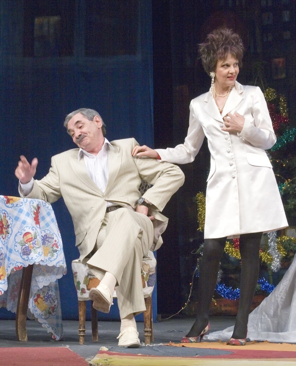 «Вот и встретились два одиночества в Рождественский вечер. Он – командированный в Россию американец, Она – очаровательная русская вдовушка. А в Рождество, как известно, происходят всякие чудеса… В самый интересный момент, в момент предложения руки и сердца, являются их покойные супруги – американская феминистка Дебора и русский балагур, пьяница и душа компании – Гришаня. И начинается ТАКОЕ… 100% комедии. Мало не покажется».