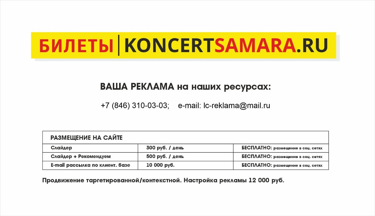 Размещение блока на афише каждого мероприятия предварительно (до отправки афиш в печать) согласовывается с администрацией Koncertsamara.ru.