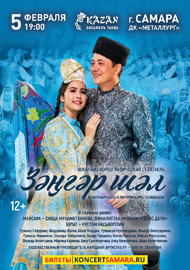 «Голубая шаль» – пьеса драматурга Карима Тинчурина, который стоял у истоков создания татарского театра. История о двух влюбленных до сих пор не потеряла своей актуальности. Музыка, песни и танцы придутся по душе зрителю. В центре сюжета – история любви Майсары и Булата. Темы, поднятые в пьесе, находят свои отголоски и в современное время.