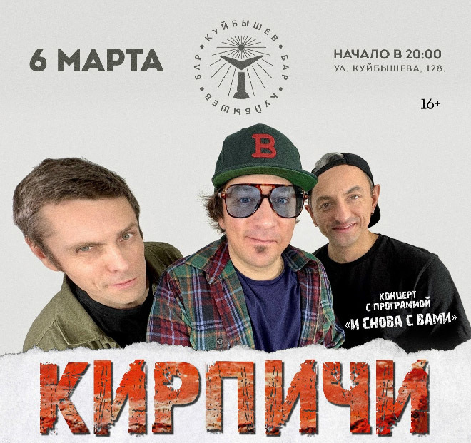 6 марта группа КИРПИЧИ приедет в Самару, и сыграет ставший в последние годы традиционным концерт в баре "Куйбышев", со специальной программой «И снова с вами»!