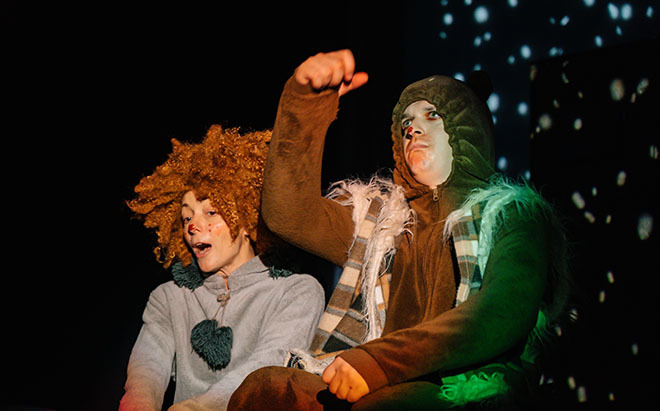 Спектакль интерактивный,поэтому маленьким непоседам будет куда приложить свою энергию - они поиграют со снегом, превратятся в зайца, и встретятся с настоящим слоном.