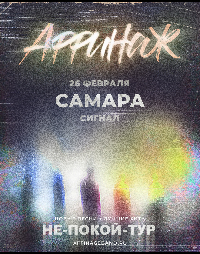 Группа «Аффинаж» приедет и сыграет программу из своих лучших и новых песен! Друзья, мы давно не играли для вас новой музыки. Так давно, что соскучились по этому волнующему процессу — представлять публике премьеры, ждать реакции, читать отзывы. И скоро мы наконец привезём вам новые песни. Их мы готовим прямо сейчас. Это будет нечто особенное — песни, которые окрыляют нас самих, творческая энергия которых не даёт успокоиться нашему уже заслуженному, но всё ещё юному коллективу. Мы очень ждём нашу встречу! И, конечно же, на концерте будут звучать самые главные хиты группы Аффинаж — которые так любите и вы, и мы!