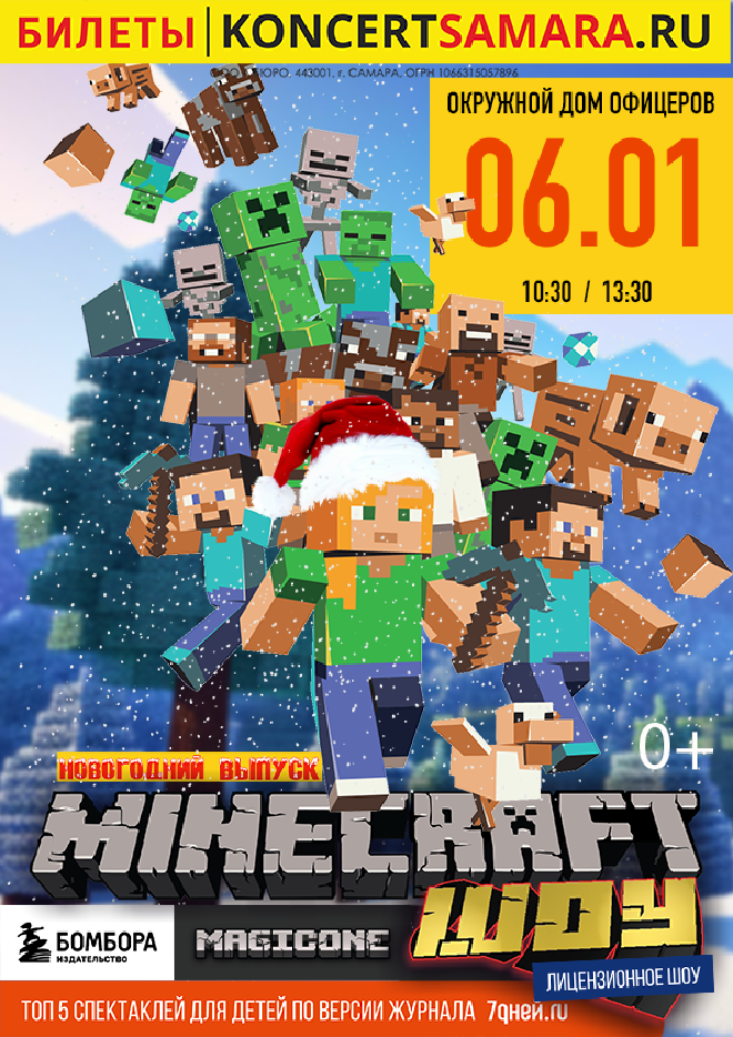 Вы готовы к незабываемым приключениям? Приглашаем Вас и Вашу семью на УНИКАЛЬНОЕ новогоднее представление, которое перенесет вас в увлекательный мир Майнкрафта!