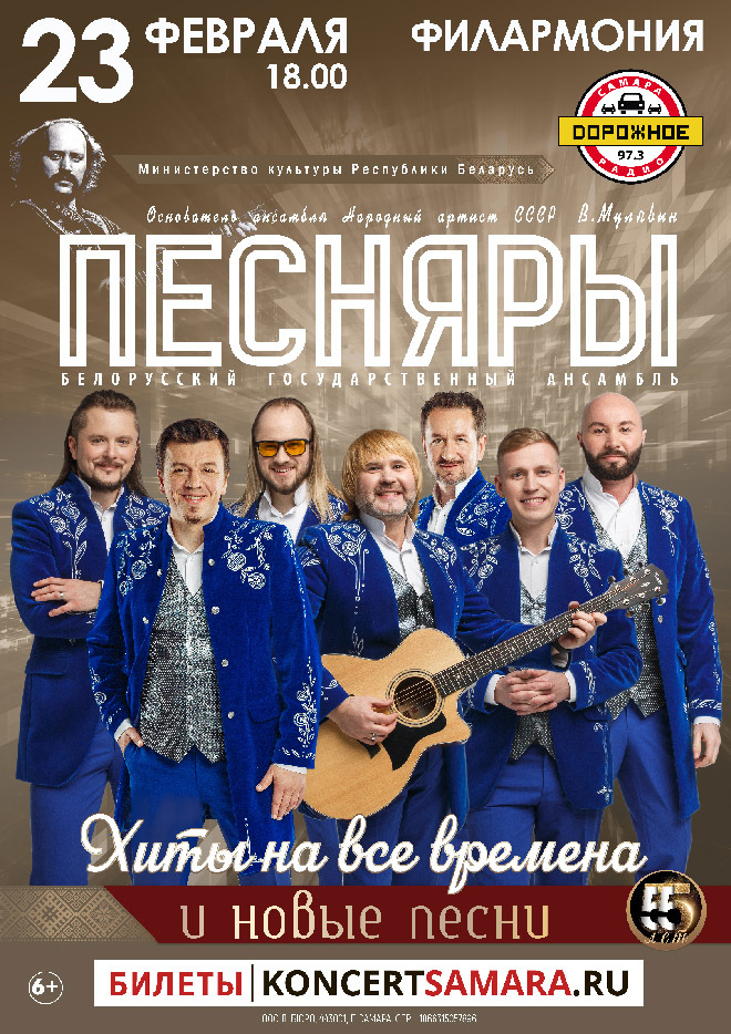 Заслуженный коллектив Республики Беларусь «Белорусский государственный ансамбль «Песняры» выступит в Вашем городе! Специально для Вас артисты приготовят яркую концертную программу, состоящую из самых известных своих песен, ставших «Золотыми хитами» : «Вологда», «Беловежская пуща», «Наши любимые», «За полчаса до весны», «Касiу Ясь канюшыну», а также новые красивых композиций.