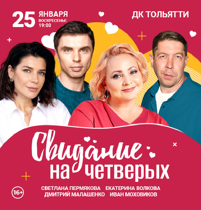 В уморительной комедии «Свидание на четверых» нелётная погода становится началом череды смешных и трогательных событий! В гостинице провинциального города встречаются пассажиры самолета, которые не смогли вылететь из-за плохой погоды. Столичная бизнес-леди Марина решает провести ночь с любовником Артемом, успев вернуть его после прощания. Однако ее планы рушатся, когда в номер неожиданно подселяется Зоя, деревенская женщина с простым нравом, которая не собирается учитывать чужие интересы. Позже к ним присоединяется ревнивый муж Зои. Каждый герой со своими эмоциями, секретами и желаниями. Эта ночь перевернет их жизни…
