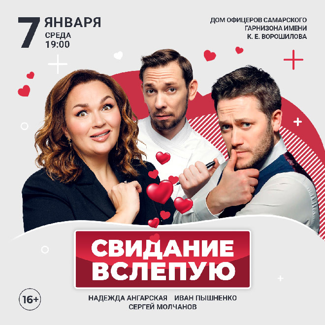 «Свидание вслепую» — это комедия про любовь, в которой Надежда Ангарская, Иван Пышненко и Сергей Молчанов говорят на взрослые темы.