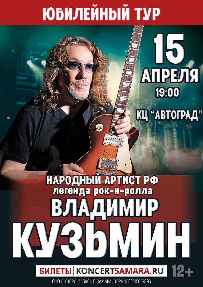 Приглашаем и вас насладиться творчеством Владимира Кузьмина! Концерт в Тольятти состоится 15 апреля, в 19:00 в КЦ «Автоград» — не пропустите!